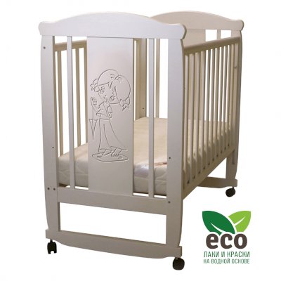 Кроватка декорирована фрезерным рисунком "Девочка". Уникальные фрезерные рисунки размером от 50 см на обеих спинках.