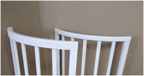Отличие серии Люкс: высота деталей верхнего и нижнего обода на обычной овальной кроватке – 25 мм, на овальной кроватке Люкс – 38 мм.