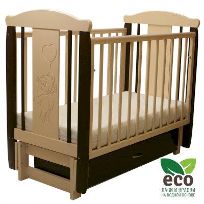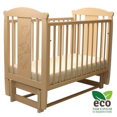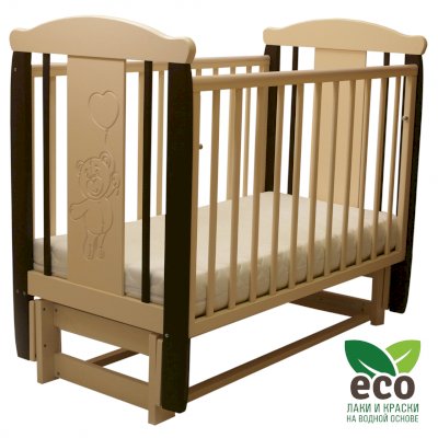 Кроватка "Соня 05" имеет механизм качания продольный маятник. Механизм качания фиксируется. Возможен вариант кровати с ящиком.