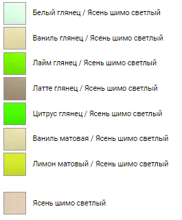 Цвет БЕЛЫЙ / ГОЛУБОЙ / ЖЕЛТЫЙ / ЗЕЛЕНЫЙ / КОРИЧНЕВЫЙ / КРАСНЫЙ / ОРАНЖЕВЫЙ / РОЗОВЫЙ / САЛАТОВЫЙ / СИНИЙ / СИРЕНЕВЫЙ / КОРИЧНЕВОЕ ДЕРЕВО / СВЕТЛОЕ ДЕРЕВО / СЕРОЕ ДЕРЕВО