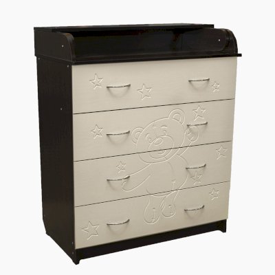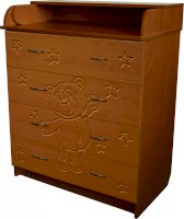 Вам понравится привлекательный внешний вид детского комода. На его лицевой части вы увидите углубленный декор в виде Мишки.