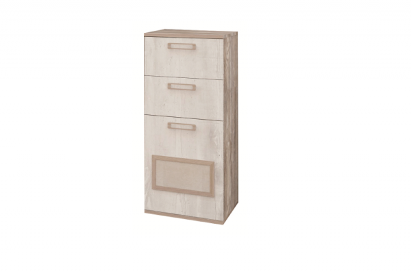 Пенал представлен в двух исполнениях – со вставками из эко кожи и с зеркалом (зеркало с пескоструйной обработкой). В центральной секции верхние створки устроены по принципу купе.