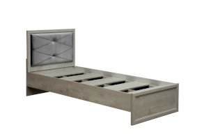 Односпальная кровать с настилом – выбор тех, кто предпочитает прочное и жесткое основание. Выдерживает нагрузку до 150 кг (с учетом веса матраса). Жесткий матрас дополнит концепцию. Прекрасно подходит для подростка, который растет и формируется. Для данной модели рекомендована определенная высота матраса – 180-200 мм – именно он идеально вписывается в задуманный дизайнерами каркас кровати. Отдельная тема – это изголовье кровати. Оно выполнено из микровелюра – мягкое, удобное и визуально очень красивое – с эффектом утяжки. Это еще и очень комфортно. Если вы или ваш ребенок предпочитаете читать перед сном или смотреть телевизор сидя, а не лежа (что, кстати, гораздо правильнее и полезнее с медицинской точки зрения), то мягкое тканевое изголовье будет отличной поддержкой и опорой – на него можно опереться, как на диванную подушку. Такая поддержка очень важна при формировании и поддержании осанки. Получается эффект «два в одном» - кровать и диван одновременно. Еще один несомненный плюс – низкое изножье кровати. В зависимости от высоты матраса изножье будет либо вровень с ним, либо ниже, не ограничивая человека даже очень высокого роста.