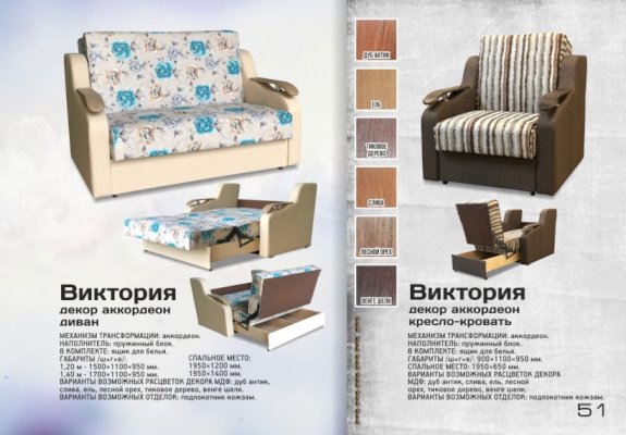 Кресло аккордеон Виктория с декором (Асмана) – товар доступен к покупке в интернет-магазине nefteyuganskiy-dommebeli.ru. Цена – 28 779 руб. без учета доставки. Стоимость дополнительных услуг и сроки получения мебели уточняйте у менеджера. Возможен безналичный расчет, оплата по карте на сайте.