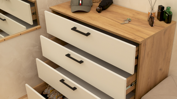 Комод Нео (Трия) – товар доступен к покупке в интернет-магазине nefteyuganskiy-dommebeli.ru. Цена – 15 394 руб. без учета доставки. Стоимость дополнительных услуг и сроки получения мебели уточняйте у менеджера. Возможен безналичный расчет, оплата по карте на сайте.