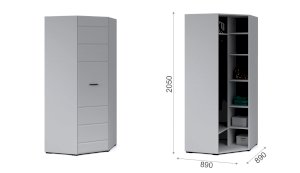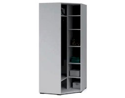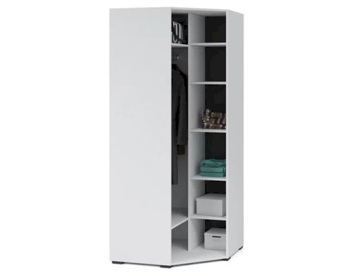 Угловой шкаф выполнен в современном стиле – сочетает в себе функциональность и эффектный внешний вид: строгая горизонтальная фрезеровка фасадов, ручки и задняя стенки контрастного черного цвета. Глянцевые белые фасады High Gloss из МДФ наполняют комнату светом, делают ее просторнее. Внутри предусмотрены секции для белья и отделение со штангой. Шкаф позволяет рационально использовать пространство и будет хорошо смотреться даже в небольшой комнате, служит связующим звеном для составления угловой системы хранения. Идеально компонуется со всеми модулями системы Йорк.