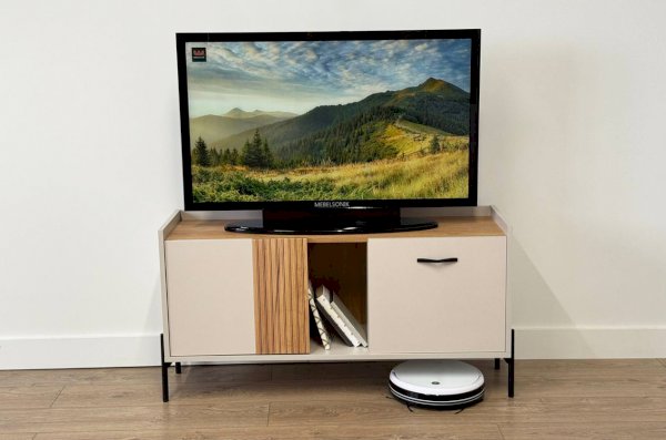 Стильная металлическая ручка придает тумбе современный и модный вид. Открытая ниша обеспечивает легкий доступ к вещам, которые вы используете часто, или может служить пространством для размещения медиа-устройств.
