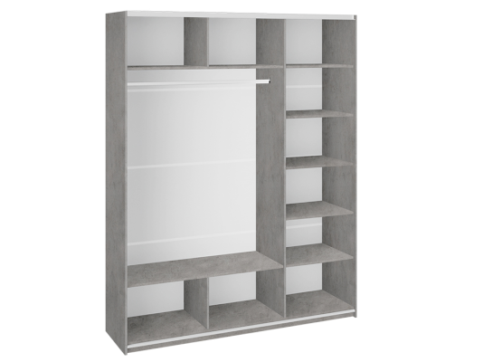 Фурнитура: Алюминиевые ручки дверей, алюминиевый ходовой профиль, полкодержатель флиппер, усиленные эксцентриковые стяжки