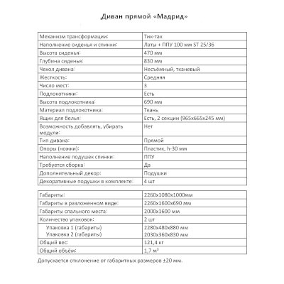 Диван Мадрид (Аквилон) – товар доступен к покупке в интернет-магазине nefteyuganskiy-dommebeli.ru. Цена – 66 360 руб. без учета доставки. Стоимость дополнительных услуг и сроки получения мебели уточняйте у менеджера. Возможен безналичный расчет, оплата по карте на сайте.