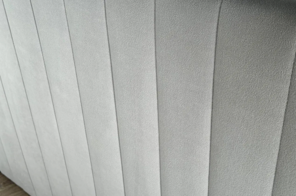 Корпус, изголовье и задняя боковина выполнены из прочного ДСП толщиной 16 мм, ППУ и велюра, что обеспечивает долговечность и надежность конструкции. Мягкие фасады выкатных ящиков, обтянутые благородной велюровой тканью, добавляют элемент роскоши и создают уютную атмосферу в комнате.