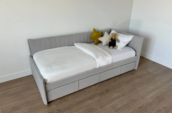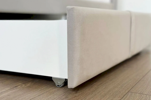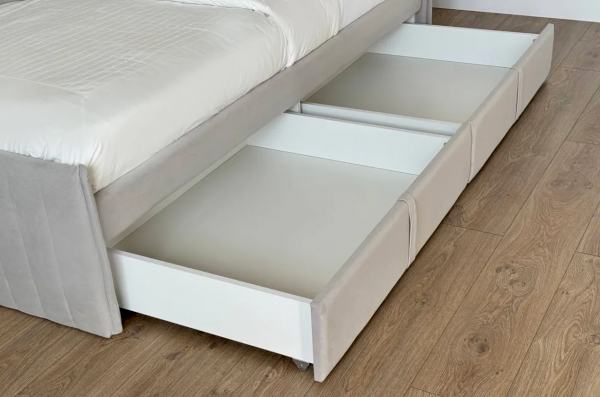 Вместительные выкатные ящики предоставляют дополнительные возможности для хранения постельного белья, одежды или других важных вещей, что особенно актуально для небольших помещений. Настил из ЛДСП гарантирует удобство и надежность использования.