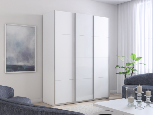 Серия «Прайм» отличается доступностью и функциональностью Навесные двери и лаконичная отделка фасадов создают прогрессивный дизайн. Подойдет тем, кто любит компактную и изящную мебель. Алюминиевые ручки и верхний ходовой профиль обеспечивают легкость и прочность конструкции. Многолетняя безупречная работа благодаря высококачественной немецкой фурнитуре Hettich. Прочная ПВХ-кромка толщиной до 1 мм защищает края от сколов и повреждений. Плавный ход дверей обеспечивает надежная система Hettich Top Line M. Дополнительно можно установить доводчики. Снаружи нет заглушек и винтов благодаря стяжечной системе крепления полок на флипперах, а корпус усилен эксцентриковыми стяжками. Навесные двери скрывают раздвижной механизм от глаз. Они надежно удерживаются в направляющих и не соскакивают. Каждая дверь поделена на 4 секции Секции расставляются в произвольном порядке, создавая новый дизайн фасада.