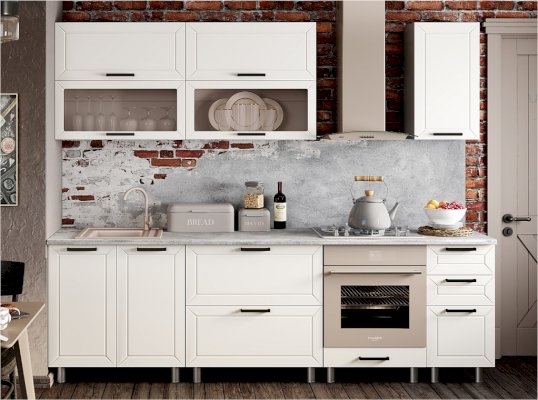 Классическая кухня идеально вписывается в любой интерьер и по праву считается заветной мечтой любой хозяйки. Она никогда не выйдет из моды и подойдет всем, кто хранит верность традициям и не разменивается на попытки угнаться за скоротечной модой. Брендовое цветовое решение фасада делает его актуальным в любом интерьере, а декоративная отделка добавляет внешнюю привлекательность всему комплекту. Остроконечная фрезеровка по периметру фасада придаёт кухне особую элегантность, отчего общий интерьер комнаты становится более фактурным.