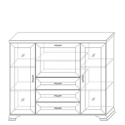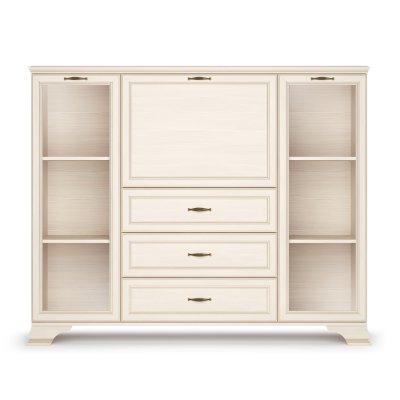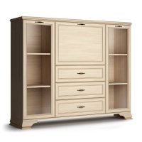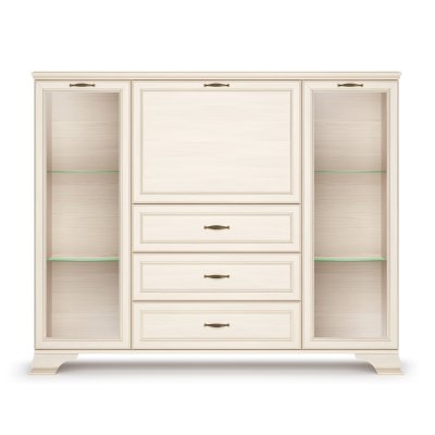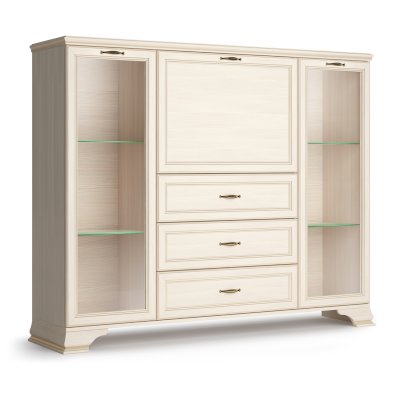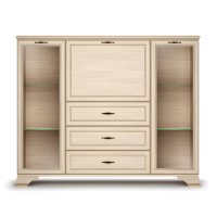 Если вам нужно купить недорогой низкий шкаф в гостиную в классическом стиле обратите внимание на данную модель. В его наполнении вам доступно 2 отделения со стеклянными дверками для хранения посуды, книг и различных сувениров. На ваш выбор вы можете докупить четыре стеклополки и модель заиграет новыми красками.