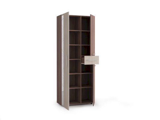 Компактный и вместительный стеллаж из коллекции мебели Дарина может применяется как самостоятельная модель, или как необходимое дополнение к основным модульным шкафам. Он отлично дополнит рабочую зону: на его полках хватит места для материалов для хобби и творчества, а так же учебных и рисовальных принадлежностей. Выдвижной ящик, станет отличным местом для хранения тех вещей, который постоянно должны быть под рукой. В двух отделениях с глухими дверцами удобно хранить тетради, книги и журналы – там они не будут выгорать на солнце. Модель выполнена из ЛДСП. На дверках установлены удобные металлические ручки. Выдвижной ящик оснащен роликовыми направляющими.