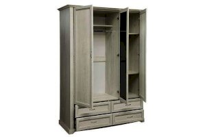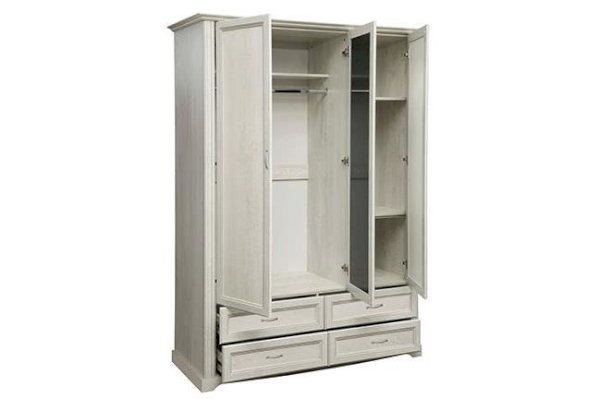 Данная модель – уменьшенная версия шкафа «Сохо» 32.01 - не менее удобная, просто более компактная, а в чем-то даже более универсальная. Два закрытых дверных полотна справа и слева и изящная зеркальная створка в центре создают мебельную терцию, наполненную воздухом и светом. Зеркало отражает пространство и таким образом визуально его расширяет. Слева расположен отсек для одежды на вешалках – он снабжен металлической штангой, которая выдерживает вес до 20 кг. Над штангой расположена удобная горизонтальная полка, которая служит в качестве антресоли, куда можно убрать сезонные вещи, либо предметы, которыми хозяева пользуются не так часто. Можно надеть любимое платье или костюм, закрыть дверцу шкафа и тут же оценить себя в зеркале. Очень удобно! Справа – отсек с полками, на которых размещается одежда, а также коробки-боксы с вещами или обувью. Каждая полка выдерживает до 5 кг – это достаточно для большого количества вещей. Внизу находятся четыре выдвижных ящика: два плюс два. Верхние удобны для белья и трикотажа, нижние – для обуви. Однако, решать вам – никто не вправе ограничивать фантазию хозяев шкафа. Благодаря современным технологиям дверцам и выдвижным ящикам не нужны доводчики – они легко и дружелюбно распахиваются и выдвигаются навстречу по первому желанию хозяев. Шариковые направляющие обеспечивают очень плавный ход. Дверцы и ящики снабжены металлическими ручками, которые учитывают анатомию ладони, поэтому ими очень удобно пользоваться.